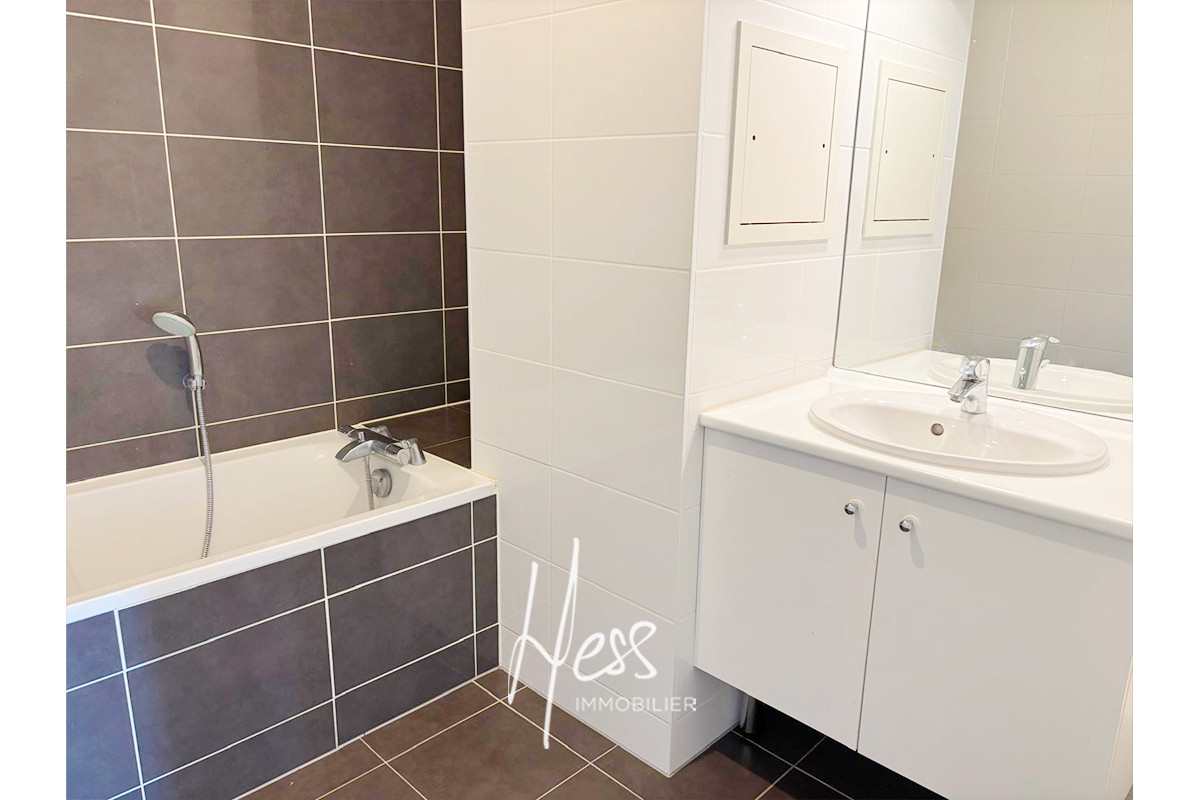 Robertsau - Au troisième étage avec ascenseur dans une résidence récente au calme, appartement 3 pièces bien agencé. Agréable entrée distributive avec placard, séjour cuisine us donnant sur une petite terrasse, deux chambres de 12,20 m2 et 11,13 m2, salle de bains, toilettes séparées avec lave-mains.