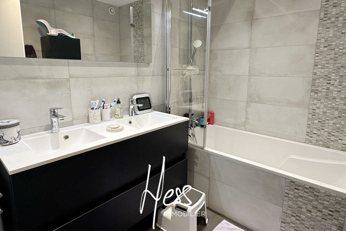 L'appartement comprend : une belle entrée, un agréable séjour très lumineux avec grand balcon, une cuisine entièrement équipée avec un second balcon, deux belles chambres, une salle de bains, des toilettes séparées, une buanderie.