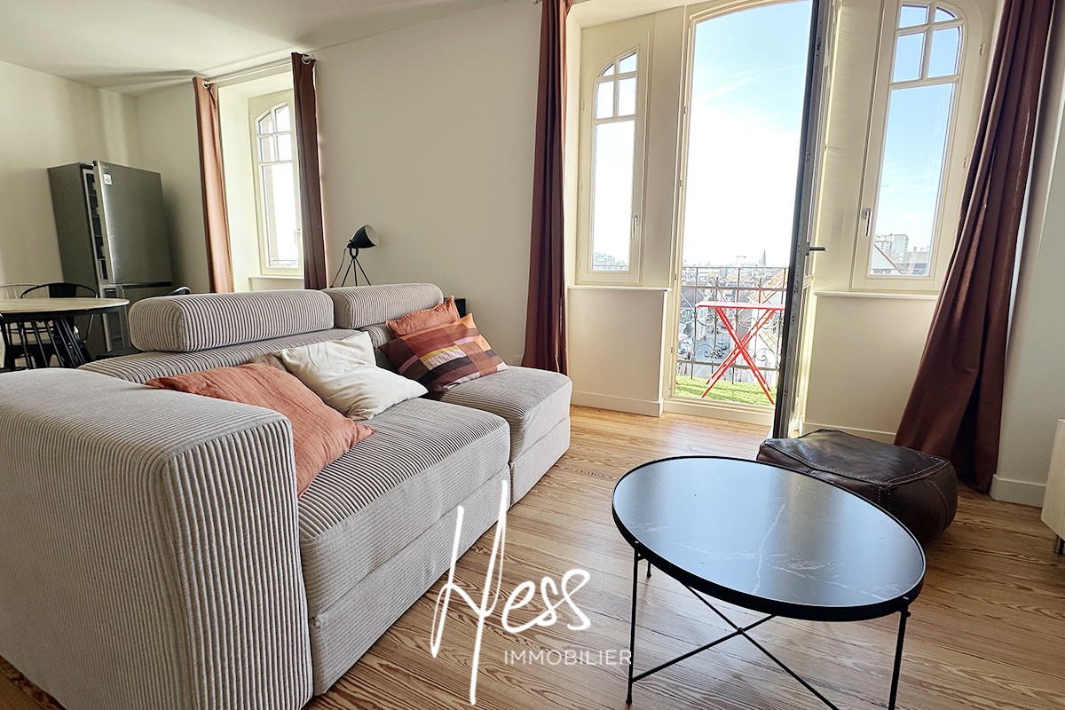 LOCATION - Schiltigheim prox rue principale - très bel appartement 3p de 63m2 en dernier étage (3ème sans ascenseur) - très belles prestations : première occupation après travaux, cachet, lumière, vue dégagée sur la Cathédrale.